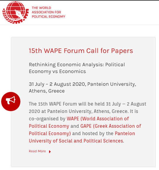 International Conference of the World Association of Political Economy (WAPE), in collaboration with the Greek Association of Political Economy (GAPE)