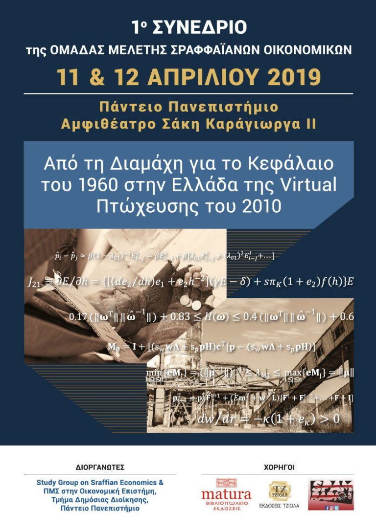 Διοργανωτές: Study Group on Sraffian Economics & ΠΜΣ στην Οικονομική Επιστήμη, Τμήμα Δημόσιας Διοίκησης, Πάντειο Πανεπιστήμιο